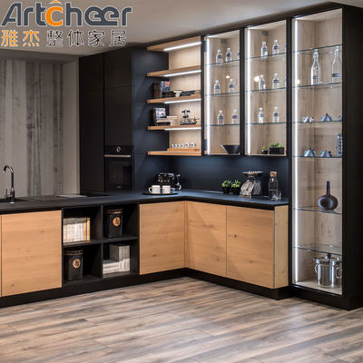 आलसी सुसान भंडारण और अनुकूलन योग्य आकार के साथ आधुनिक डिजाइन कांच दरवाजा रसोई कैबिनेट